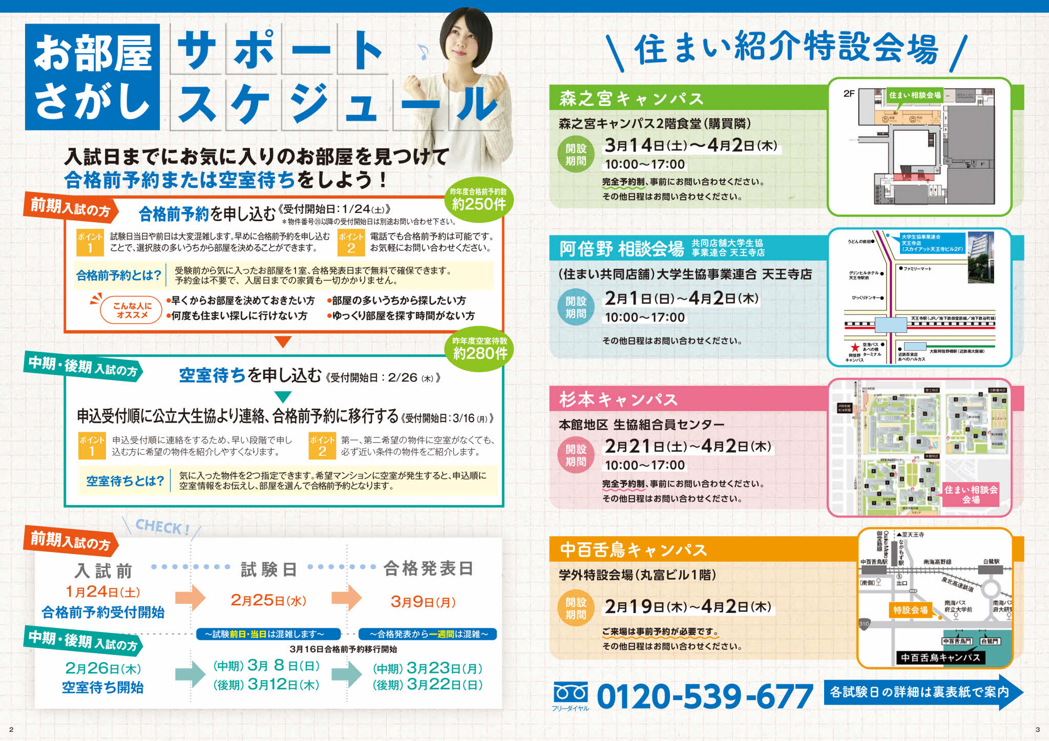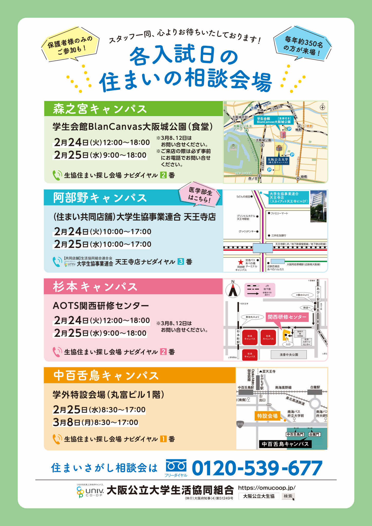 各キャンパスにおける住まい紹介会場のご案内です。
